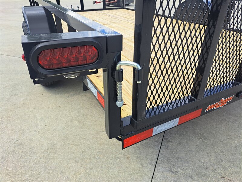 This 76" x 12' single axle utility trailer can haul your mower, your atv, or even your new side by side UTV. This is not a cheap department store trailer. It includes a 2" tube top rail, not angle iron, fully powdercoated, and NATM compliant manufacturing. All LED lighting. The rear gate has an easy to operate latching system that will not corrode and become difficult to use with age and weather.