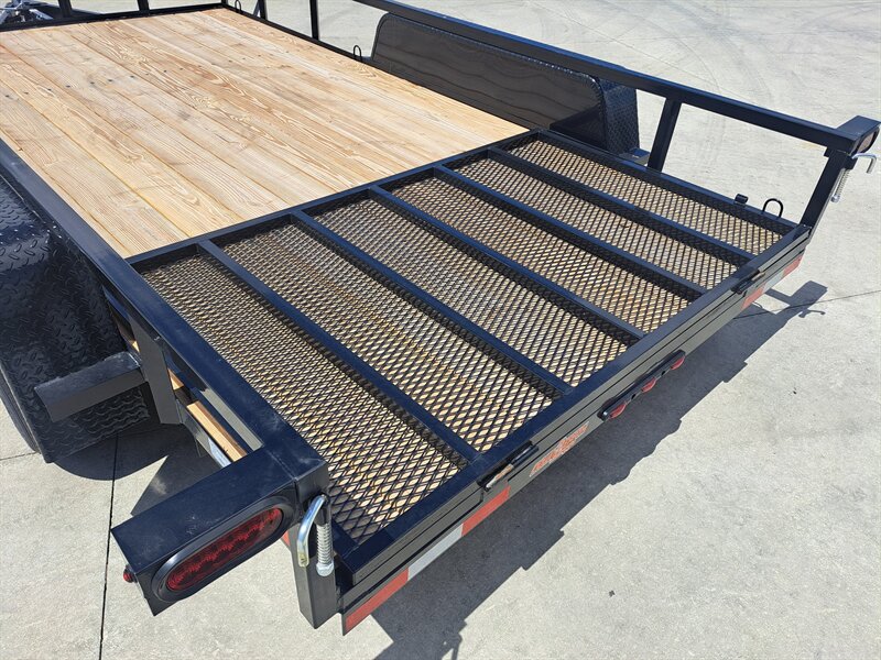 This 82" x 14' tandem axle utility trailer can haul your new side by side UTV, small utility tractor, or those building materials for the DIY home project. This is not a cheap department store trailer. It includes a 2" tube top rail, not angle iron, fully powdercoated, and NATM compliant manufacturing. All LED lighting. The rear gate has an easy to operate latching system that will not corrode and become difficult to use with age and weather.