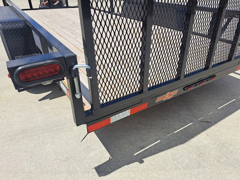 This 82" x 16' tandem axle, dual ATV trailer is as versatile as you can find! Built in side rail ramps allow for side loading 1 ATV, with enough room to load the 2nd from the rear. When removed, the side ramps allow perfect access for setting pallets of product on from the side. This is not a cheap department store trailer. It includes a 2" tube top rail, not angle iron, fully powdercoated, and NATM compliant manufacturing. All LED lighting. The rear gate has an easy to operate latching system that will not corrode and become difficult to use with age and weather.