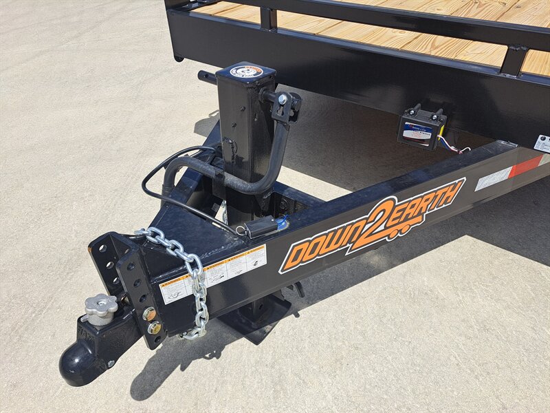 This 82" x 24'  tandem axle, 14k, equipment trailer is built like a beast and ready to haul. Adjustable height, heavy duty hitch.  Intregrated heavy duty ramps with spring assist.  Trailer is fully powdercoated. All Down2Earth trailers have NATM compliant manufacturing. All LED lighting. Spare tire carrier for optional spare tire location.